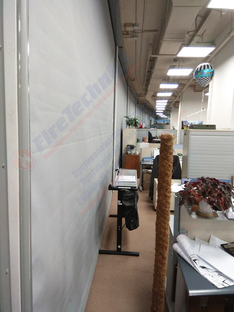 Как правило положение штор нормально открытое, при поступлении сигнала «пожар», штора автоматически начинается опускаться и перекрывать проем.